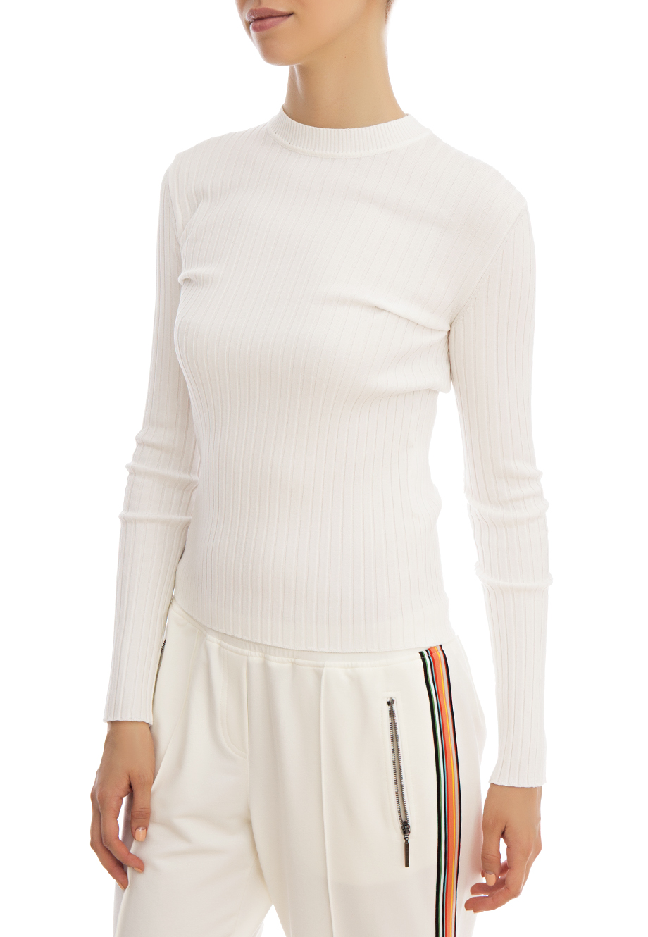 Детали: облегающий крой, круглый вырез с воротом, длинный втачной рукав, фактура в крупный рубчик.