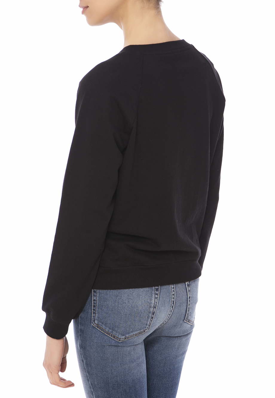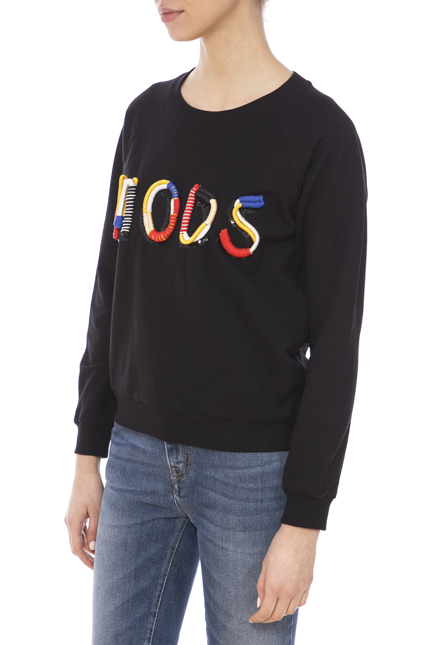 Детали: свободный крой, круглый вырез горловины, рукава реглан, манжет по нижнему краю, на рукавах и по вырезу горловины. Объёмная цветная вышивка на груди.