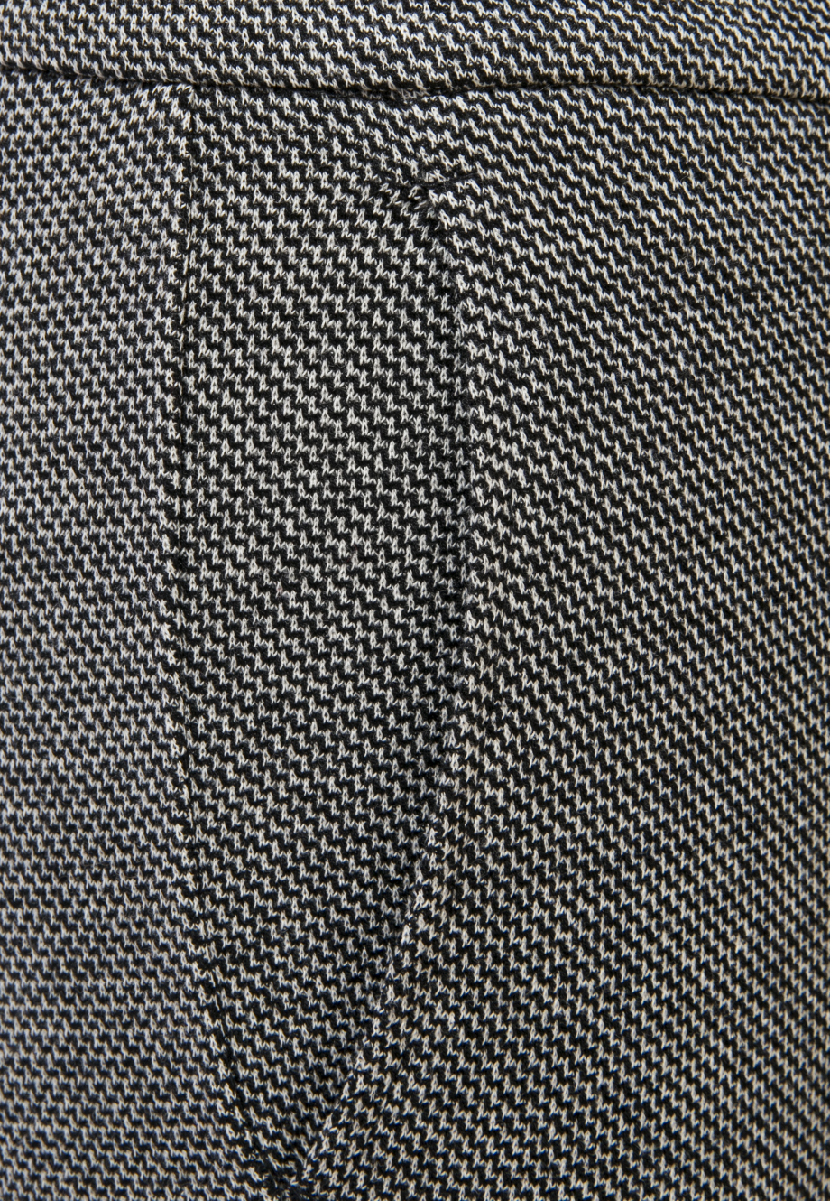 Детали: облегающий крой, высокая посадка, французские карманы по бокам, стрелки с перестрочкой, длина до щиколотки. Пояс с пуговицей, ширинка.