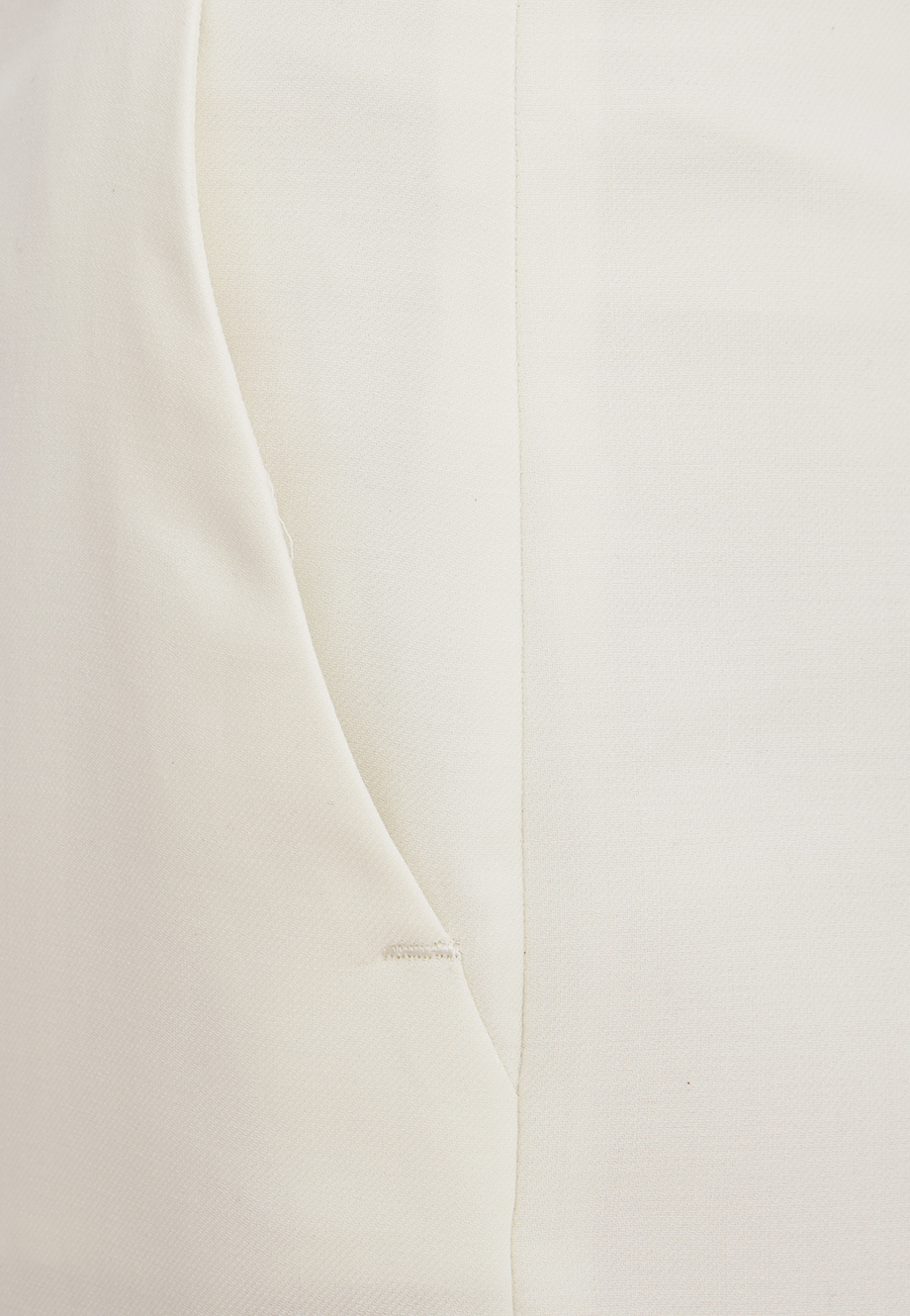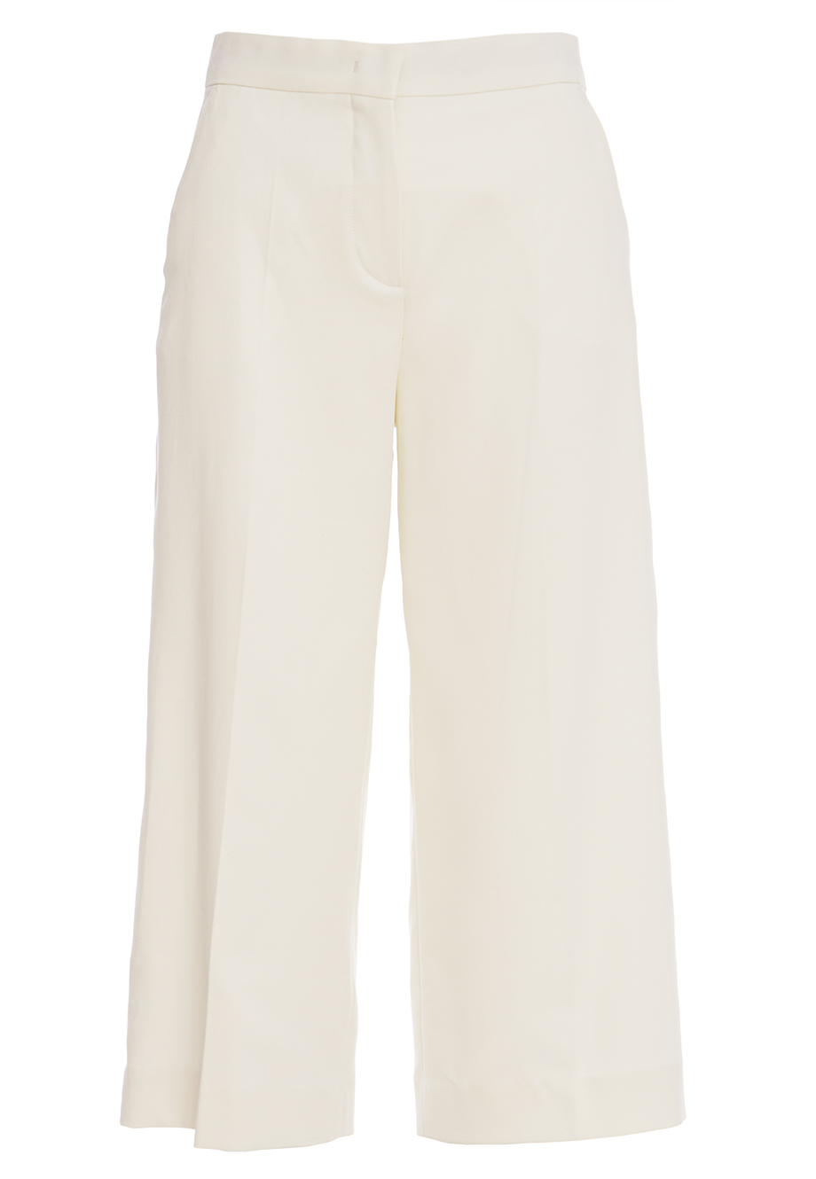 Детали: прямой свободный крой от бедра, высокая посадка, французские боковые карманы, пояс с потайным крючком, ширинка, стрелки вдоль штанин.
