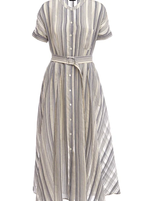 Детали: А-силуэт, низкий ворот-стойка, цельнокроеный рукав с подгибом, длина миди, линия талии выделена текстильным поясом с пряжкой, нагрудный карман, планка с пуговицами по всей длине. Подклада-комбинация.