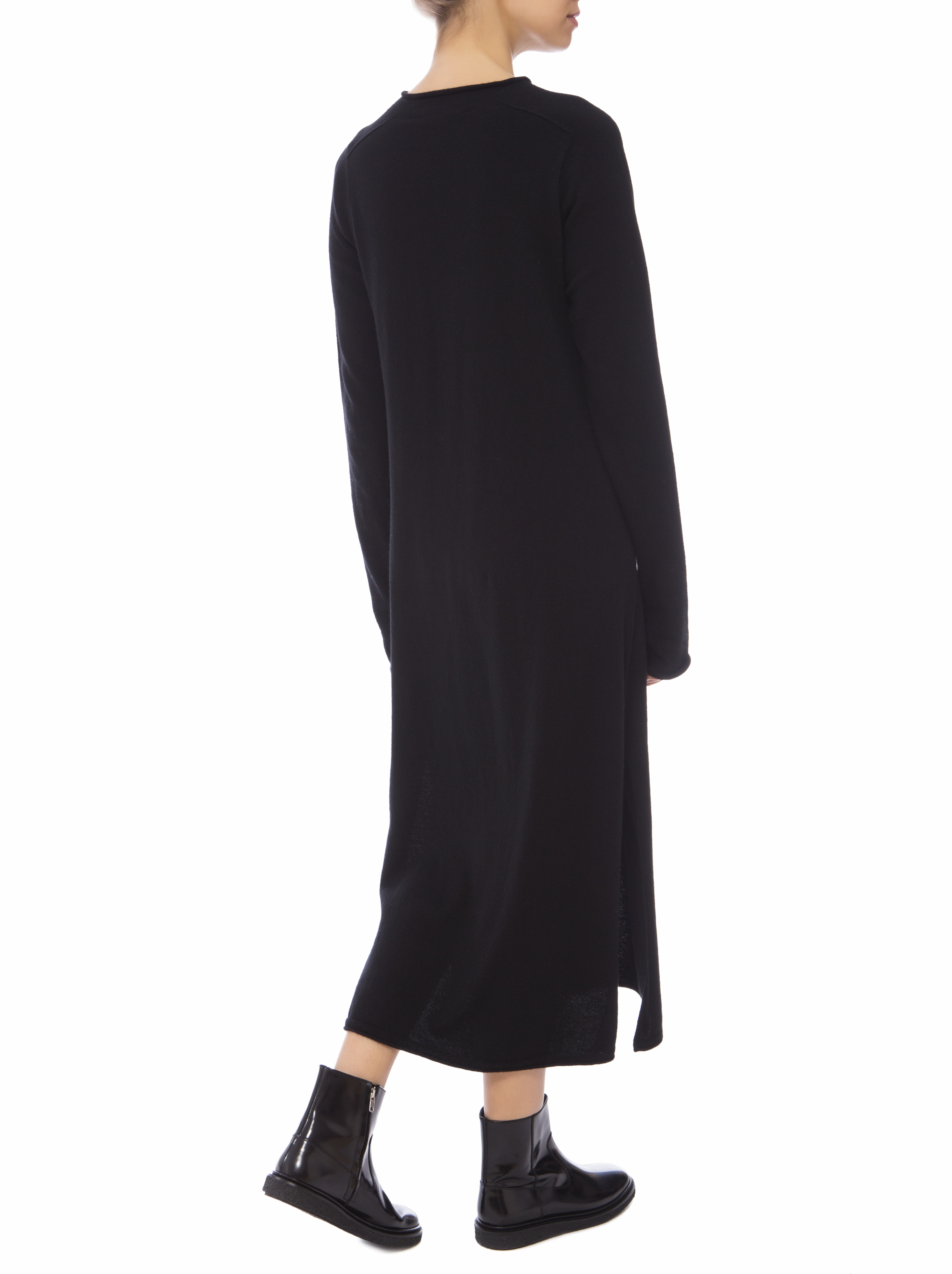 Детали: прямой силуэт, круглый вырез горловины, удлинённые рукава, по бокам два разреза.
