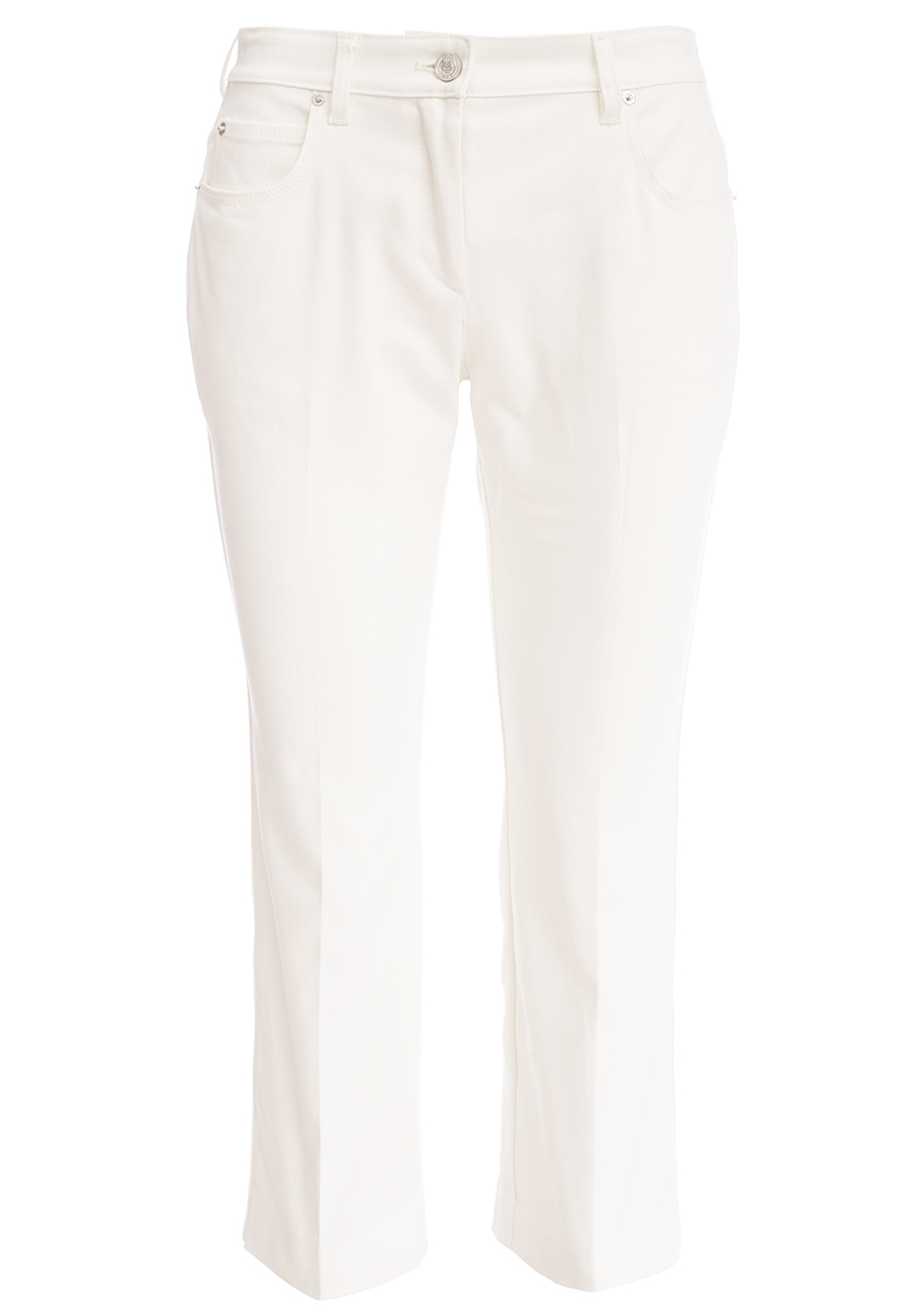 Детали: прямой крой, средняя посадка, пять традиционных карманов (задние – удлиненные), стрелки вдоль штанин, пояс со шлевками для ремня, пуговица, ширинка.