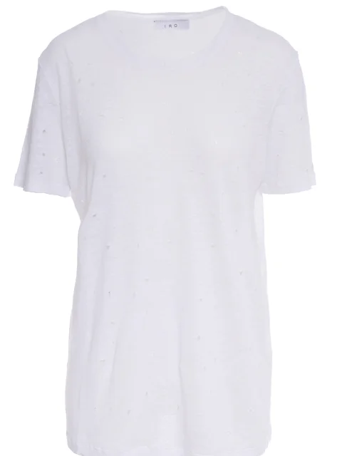 Детали: прямой свободный крой, круглый вырез горловины, короткий втачной рукав, мелкие прорехи по полотну.