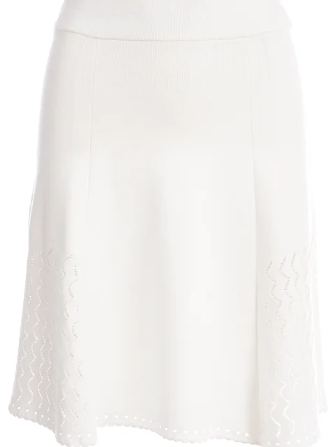 Детали: А-силуэт, высокая посадка, эластичный пояс, длина до середины бедра, боковые клинья украшены вязаным узором, фигурный край подола.