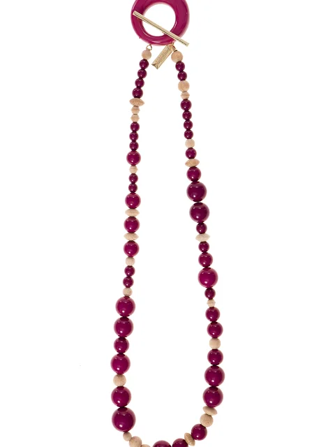 Детали: длинные бусы с комбинацией цветных и деревянных бусин, большая декоративная застёжка.