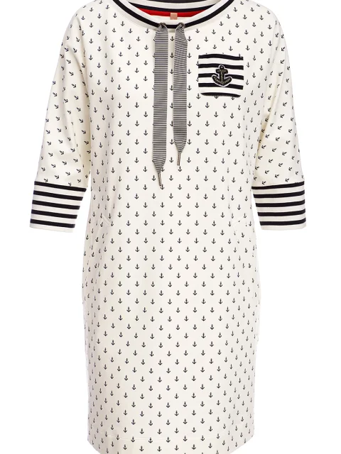 Детали: прямой крой, круглый вырез горловины с кулиской, втачной рукав длиной ¾, принт в якоря, манжеты в полоску, нагрудный карман.
