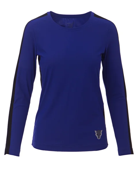 Детали: прямой крой, круглый вырез горловины, длинный рукав с лампасом, на спинке печатная аппликация. Эксклюзивный материал, разработанный для комфортных занятий спортом.