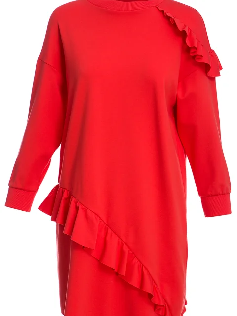 Детали: овальный крой, круглый вырез горловины, длинный спущенный рукав с манжетой, диагональные рюши.