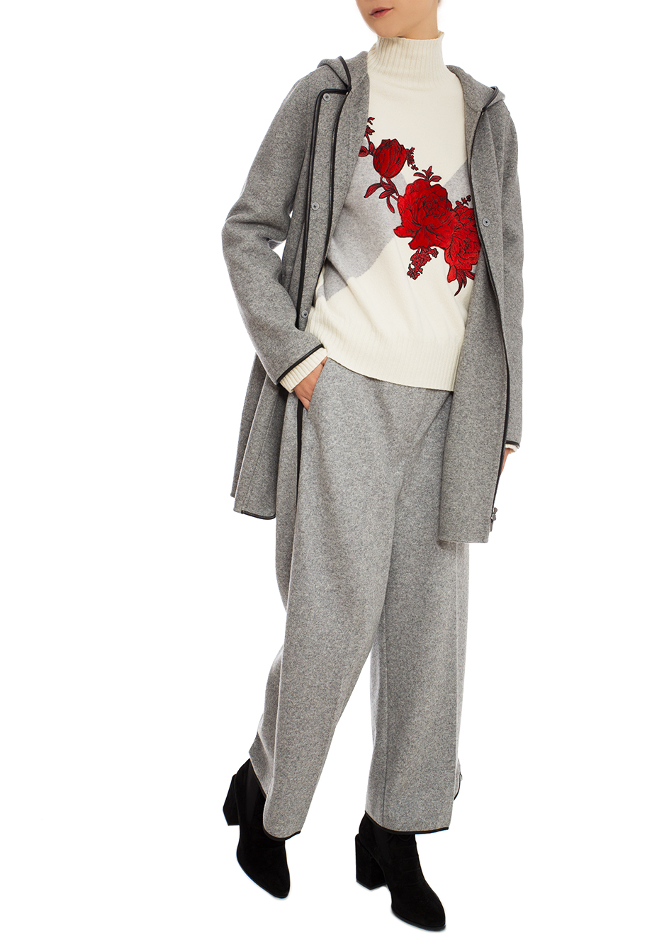 Детали: прямой крой, ворот с капюшоном, длинный втачной рукав, накладные карманы по бокам, на спинке кулиска по линии талии, застегивается молнией с клапаном. Отделка кожаным кантом по краю.