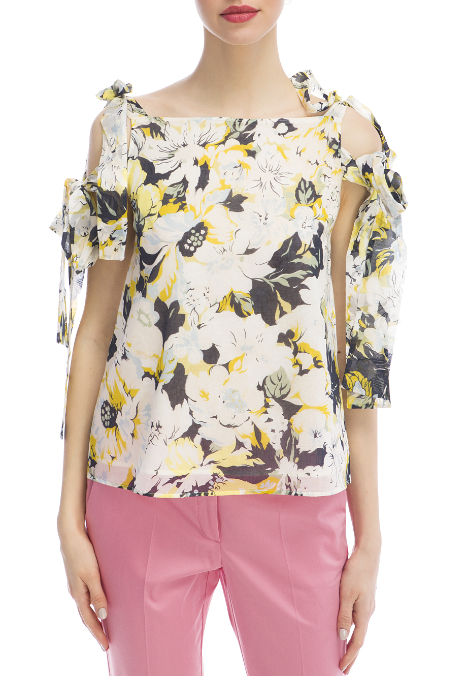 Детали: прямой свободный крой, двойные завязки лентами на плечах, цветочный принт.