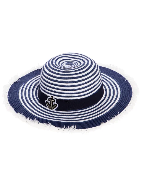 Детали: широкие поля с бахромой, круглая тулья, контрастная лента с нашивкой.