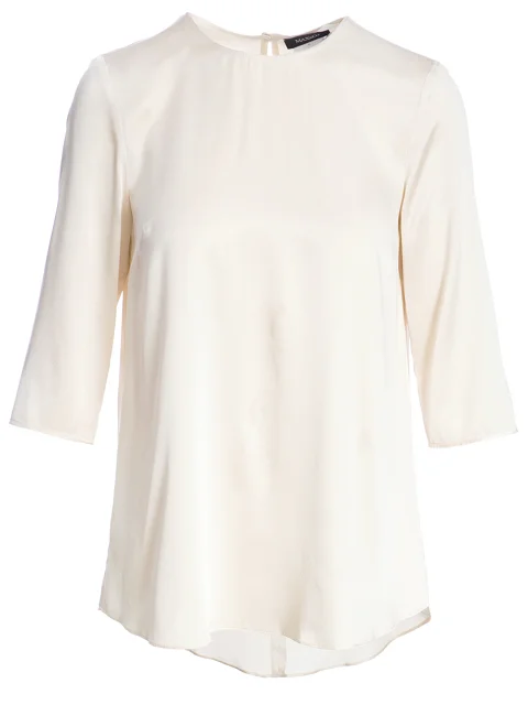 Детали: прямой крой, круглый вырез горловины с каплей и пуговицей на спинке, втачной рукав длиной ¾, боковые разрезы.