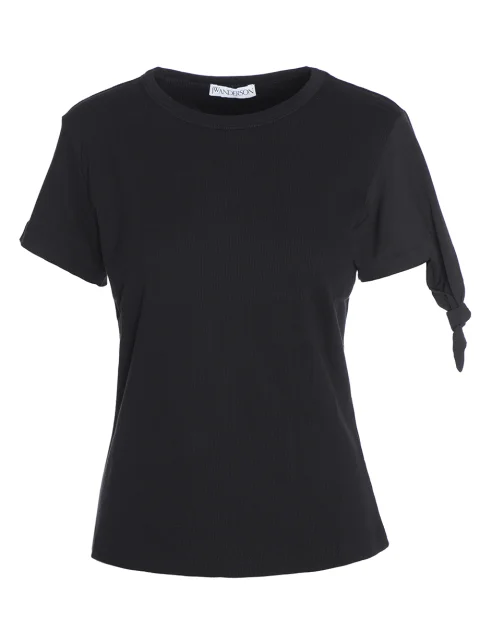 Детали: прямой крой, круглый вырез горловины, короткий втачной рукав с завязкой. Рукава и кромки из гладкого трикотажа
