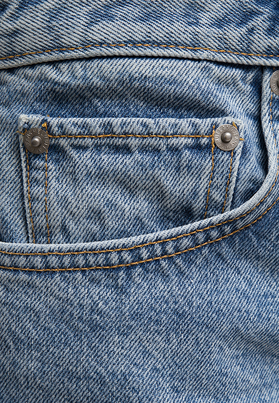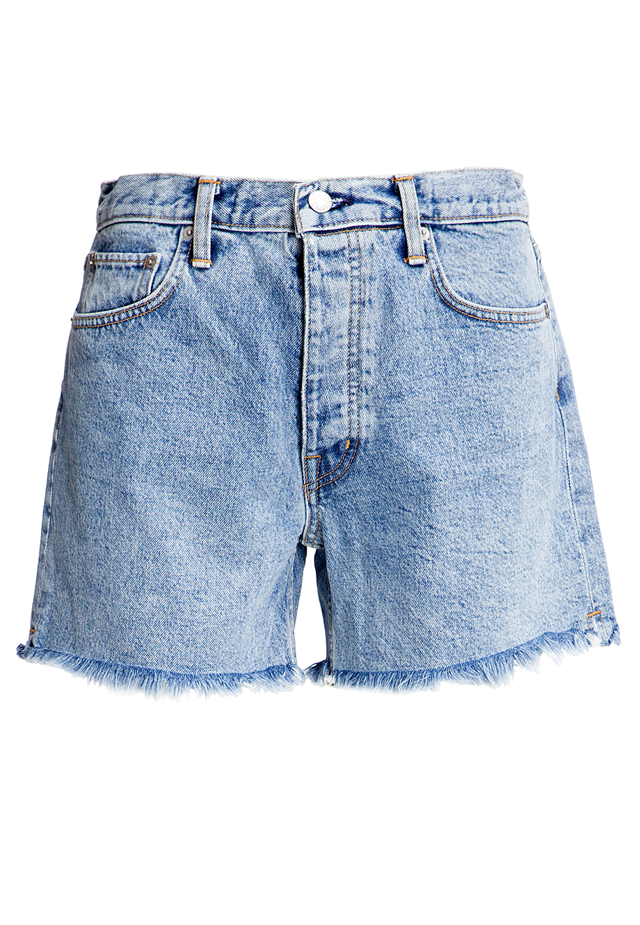 Детали: прямой свободный крой, высокая посадка, пять карманов, контрастная строчка коричневого цвета, бахрома по нижнему краю.