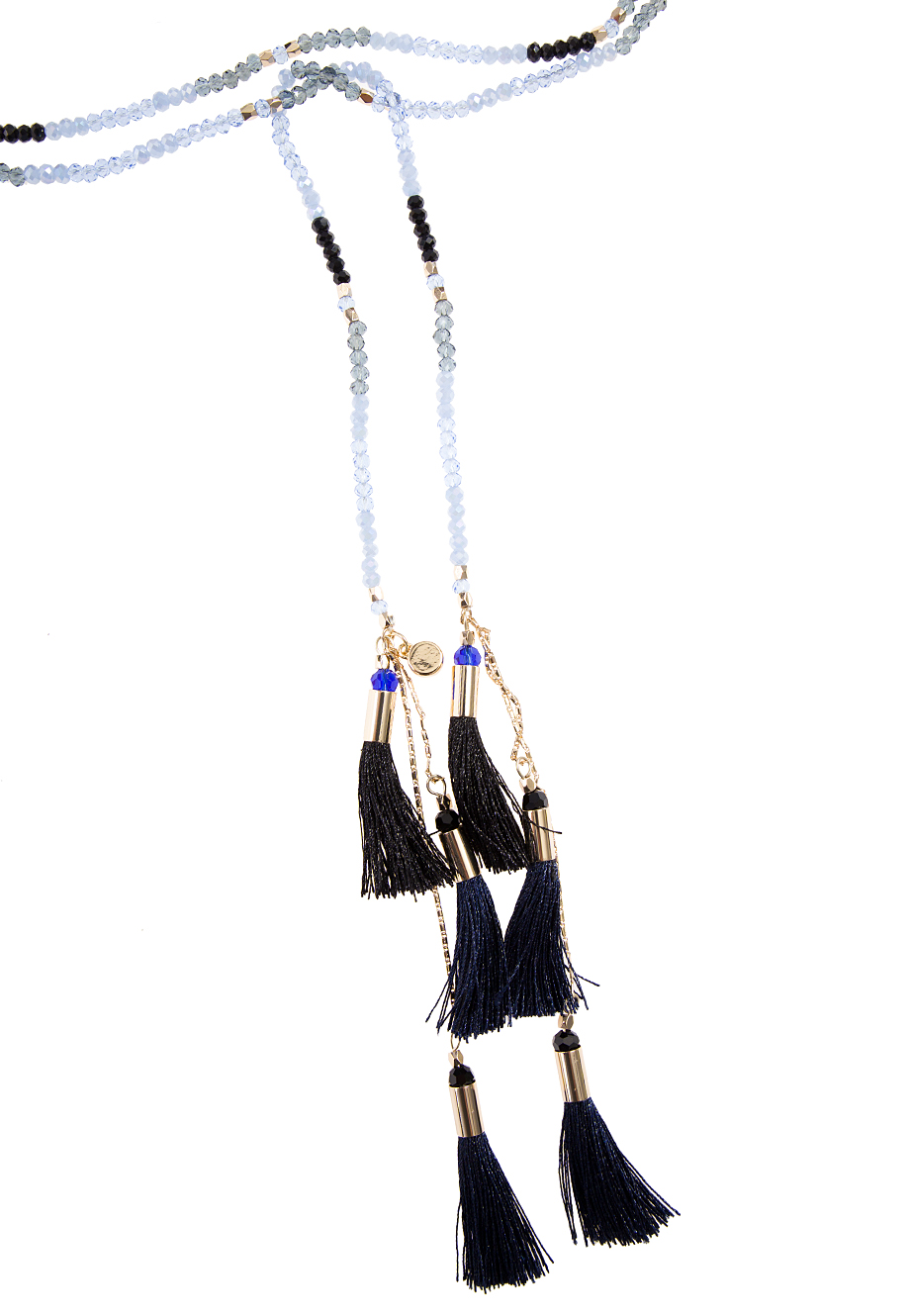 Детали: нить цветного бисера с кистями по краям.