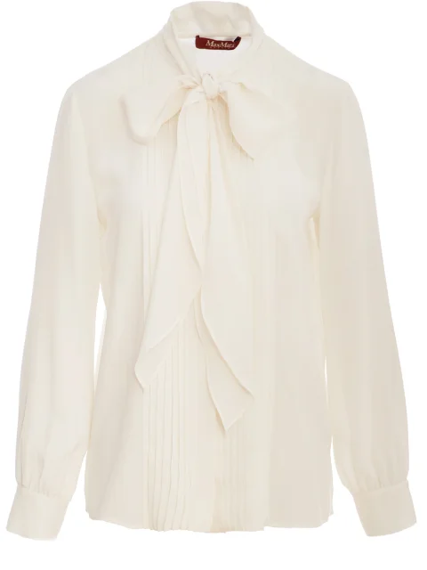 Детали: прямой крой, ворот с завязкой, длинный втачной рукав, собранный манжетой на пуговице. Полочки с плиссе, планка с рядом скрытых пуговиц.