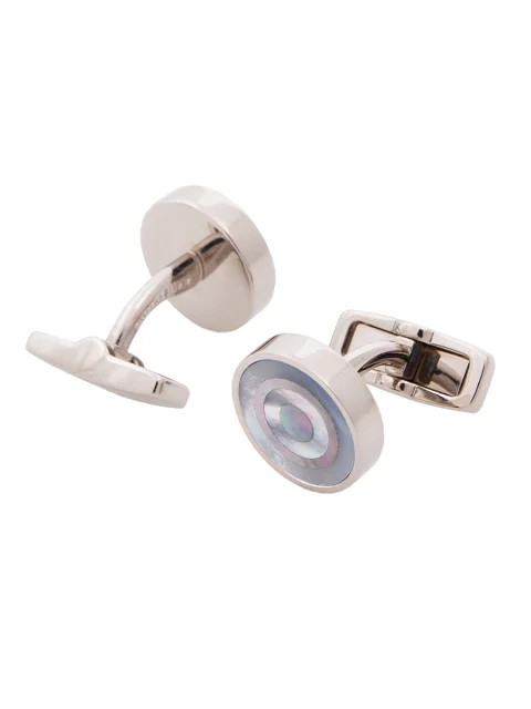 Серебристые запонки BOSS с перламутровой вставкой