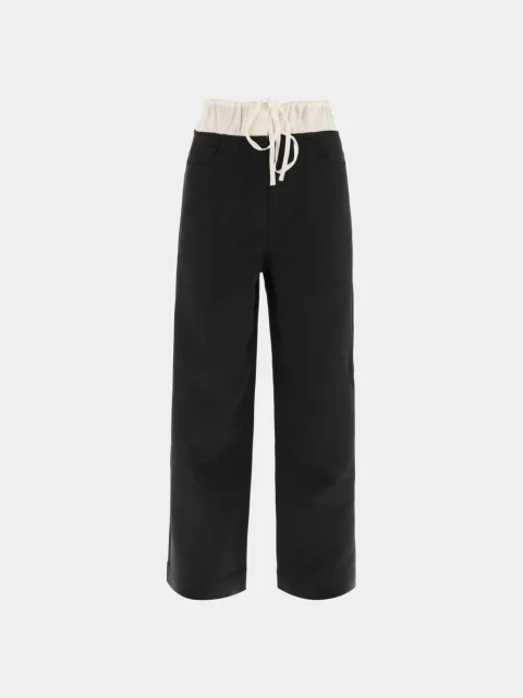 Черные брюки с контрастным поясом из легкого атласа.