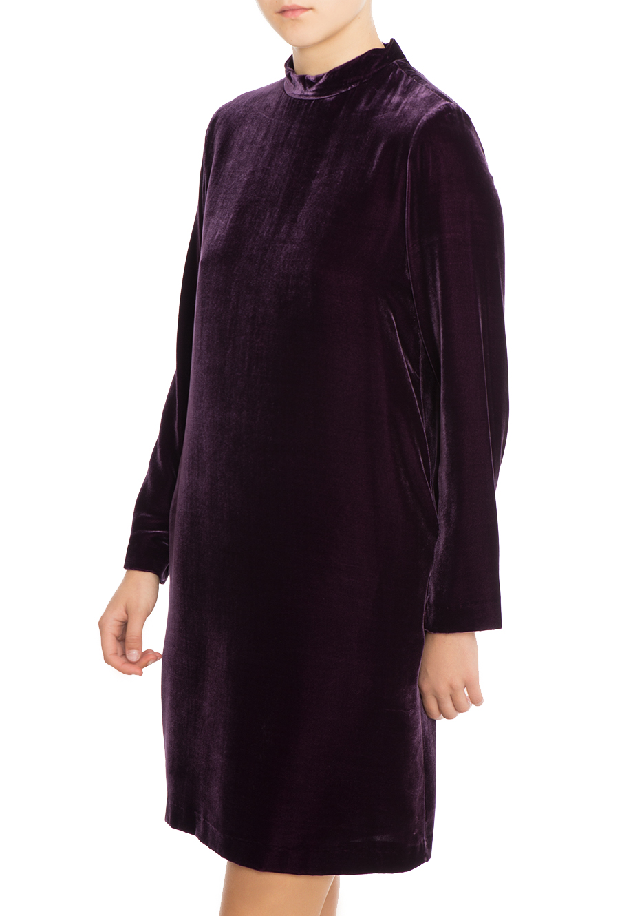 Детали: прямой крой, высокий ворот, длинный втачной рукав, длина до колена. На спинке декоративная рюша.