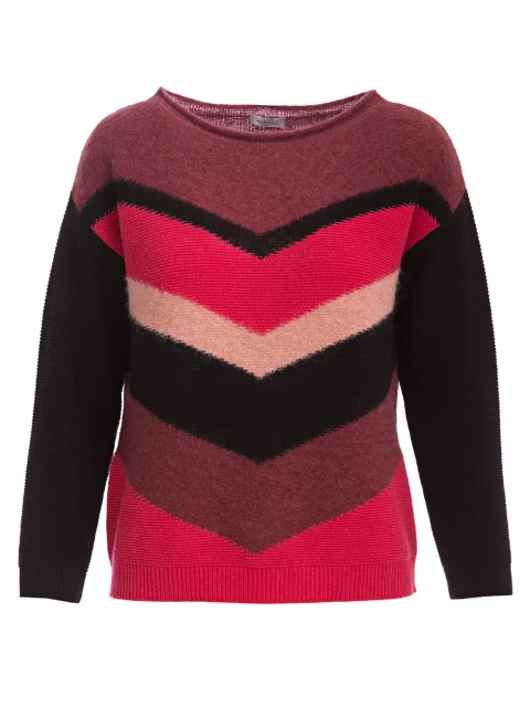 Детали: прямой свободный крой, вырез горловины лодочкой, спущенный укороченный рукав, собранный эластичной манжетой, зигзагообразный узор из пряжи разных фактур.