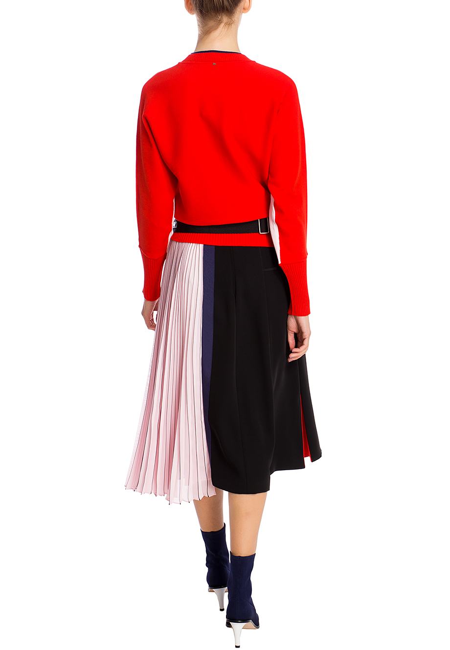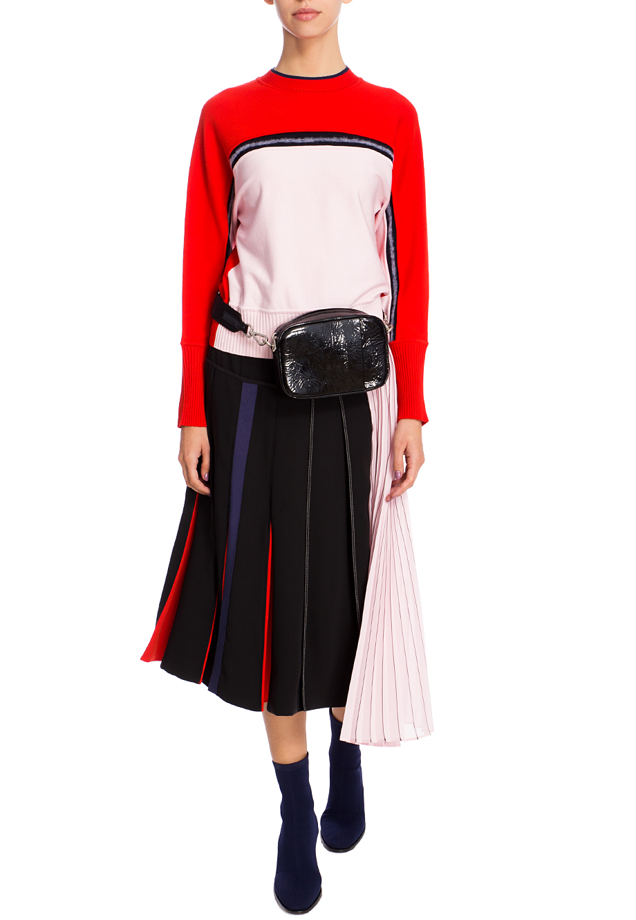 Детали: прямой крой, круглый вырез горловины, цельнокроеный рукав кимоно с манжетой, полоса с нитью мохера, резинка по нижнему краю и на рукавах.
