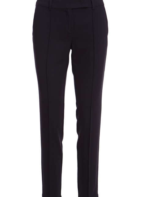 Детали: прямой крой, средняя посадка, французские боковые карманы, сзади два прорезных с рантом, пояс со шлёвками для ремня, потайной крючок, ширинка. Вдоль штанин прошитые стрелки, длина 7/8.