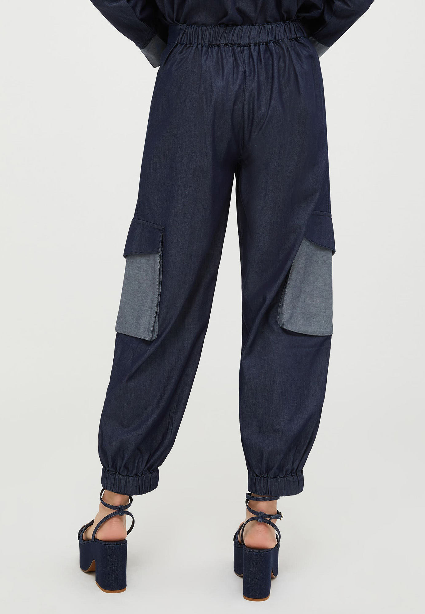 Брюки-карго с карманами контрастного цвета.
