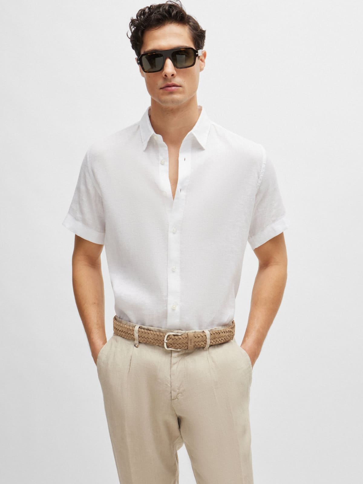 Бежевый ремень BOSS