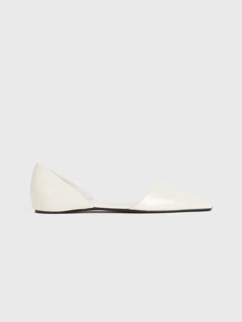 Асимметричные туфли из блестящей лакированной кожи с мятым эффектом.