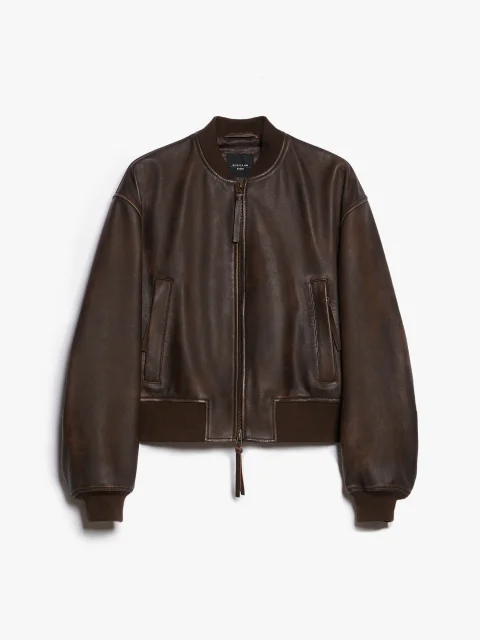 Темно-коричневый бомбер WEEKEND MAX MARA из кожи наппа