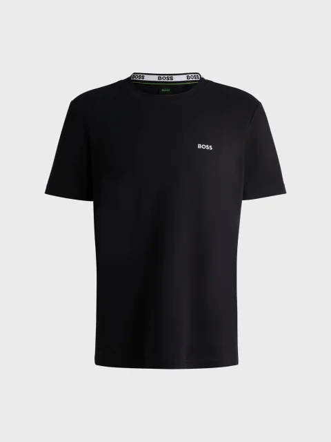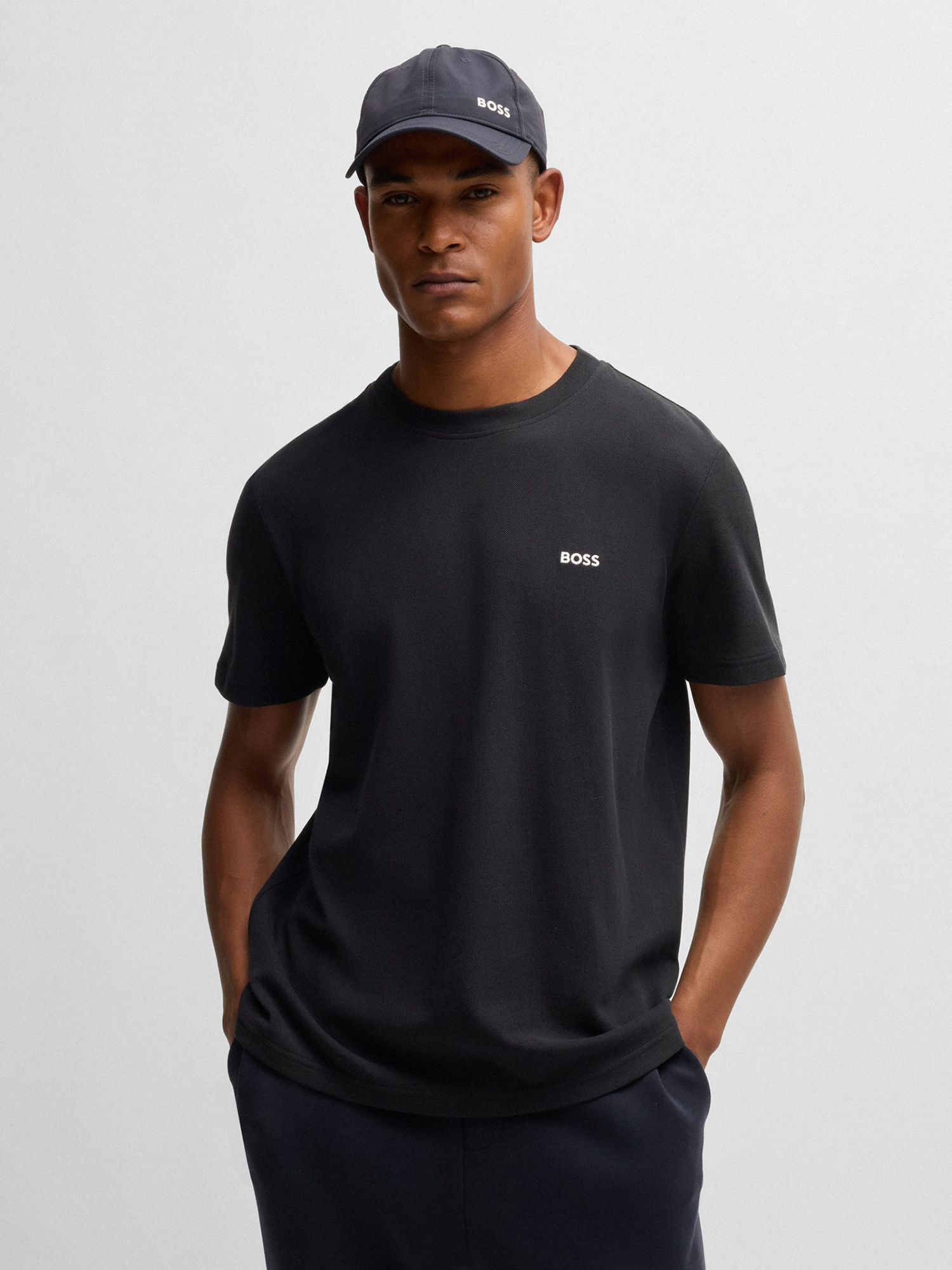 Темно-синяя футболка BOSS с жаккардовым воротником