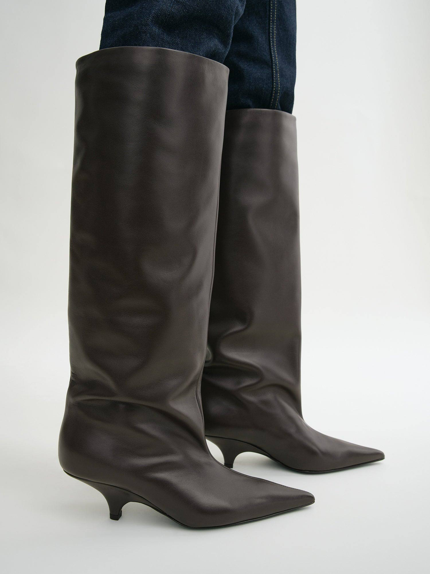Широкие сапоги из гофрированной кожи