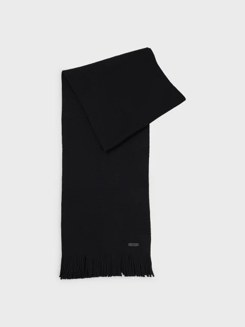 Вязаный шарф из натуральной шерсти Бахрома Нашивка с логотипом Длина: 170 см Ширина: 25 см Цвет: черный