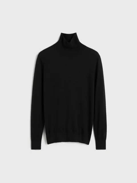 Полупрозрачный свитер-водолазка из смеси тонкой шерсти и шелка.