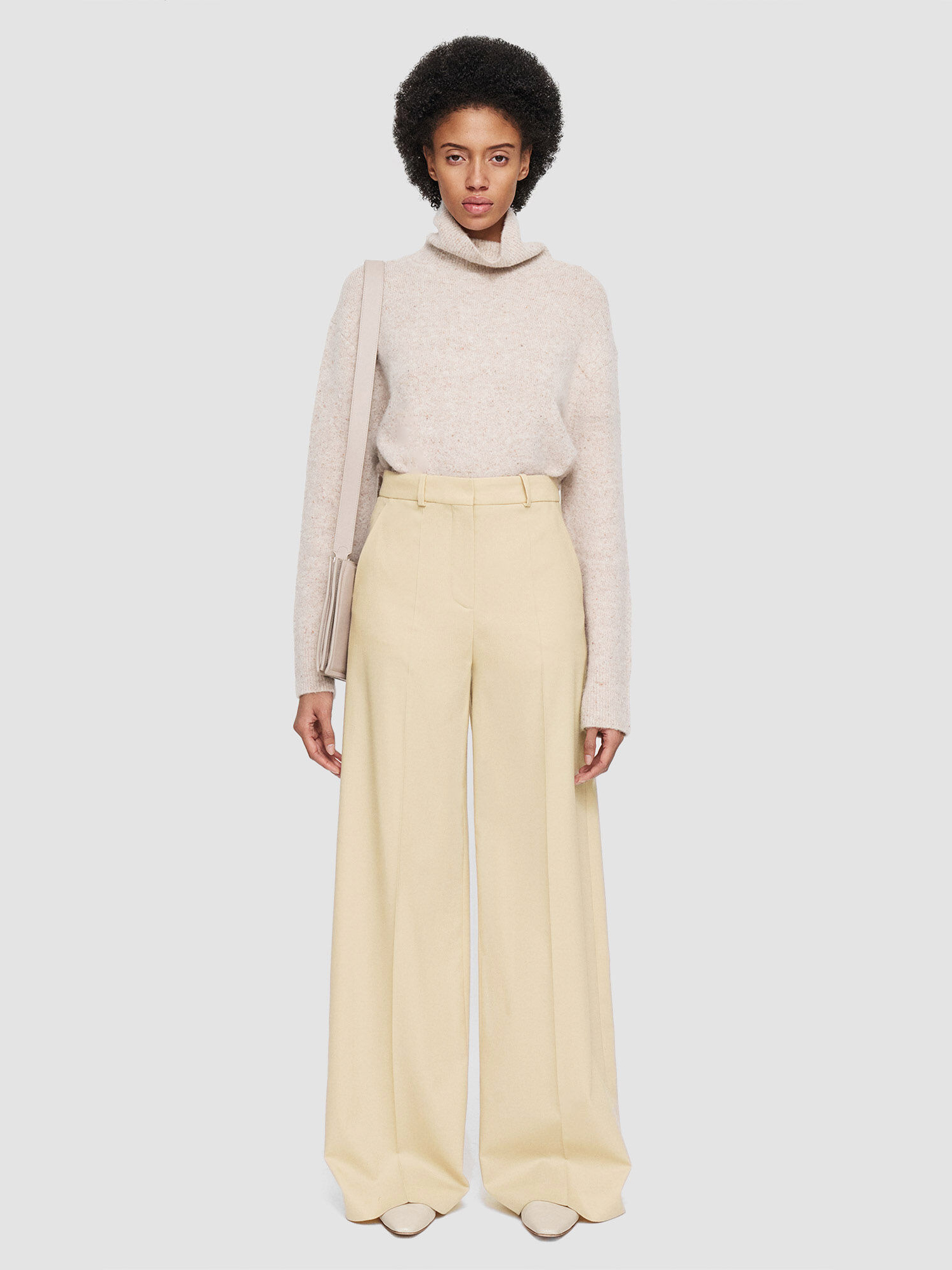 Брюки из натуральной шерсти Легкие и комфортные Широкие штанины Высокая талия Боковые карманы Изящные складки Цвет: кремовый