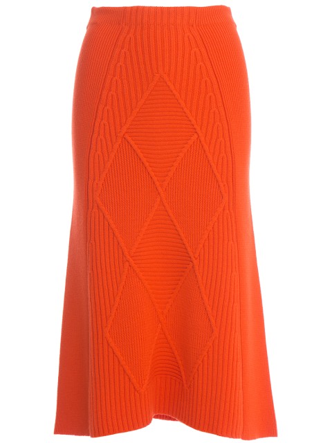 Детали: А-силуэт, высокая посадка, эластичный пояс, фактурный вязанный узор.