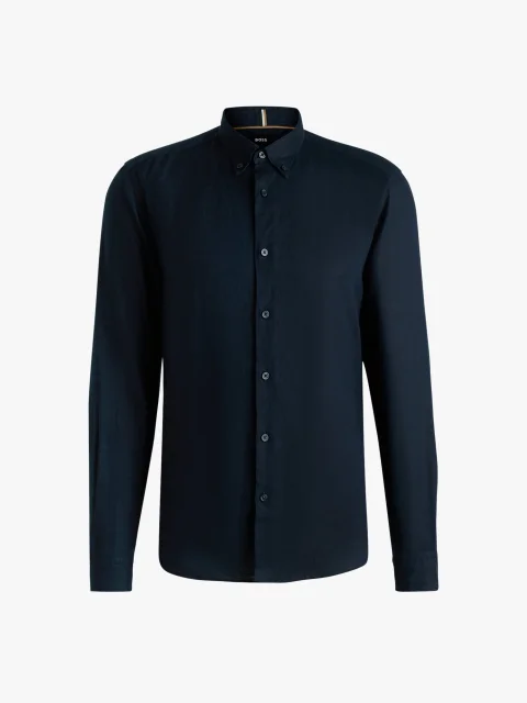 Темно-синяя рубашка Boss из льна