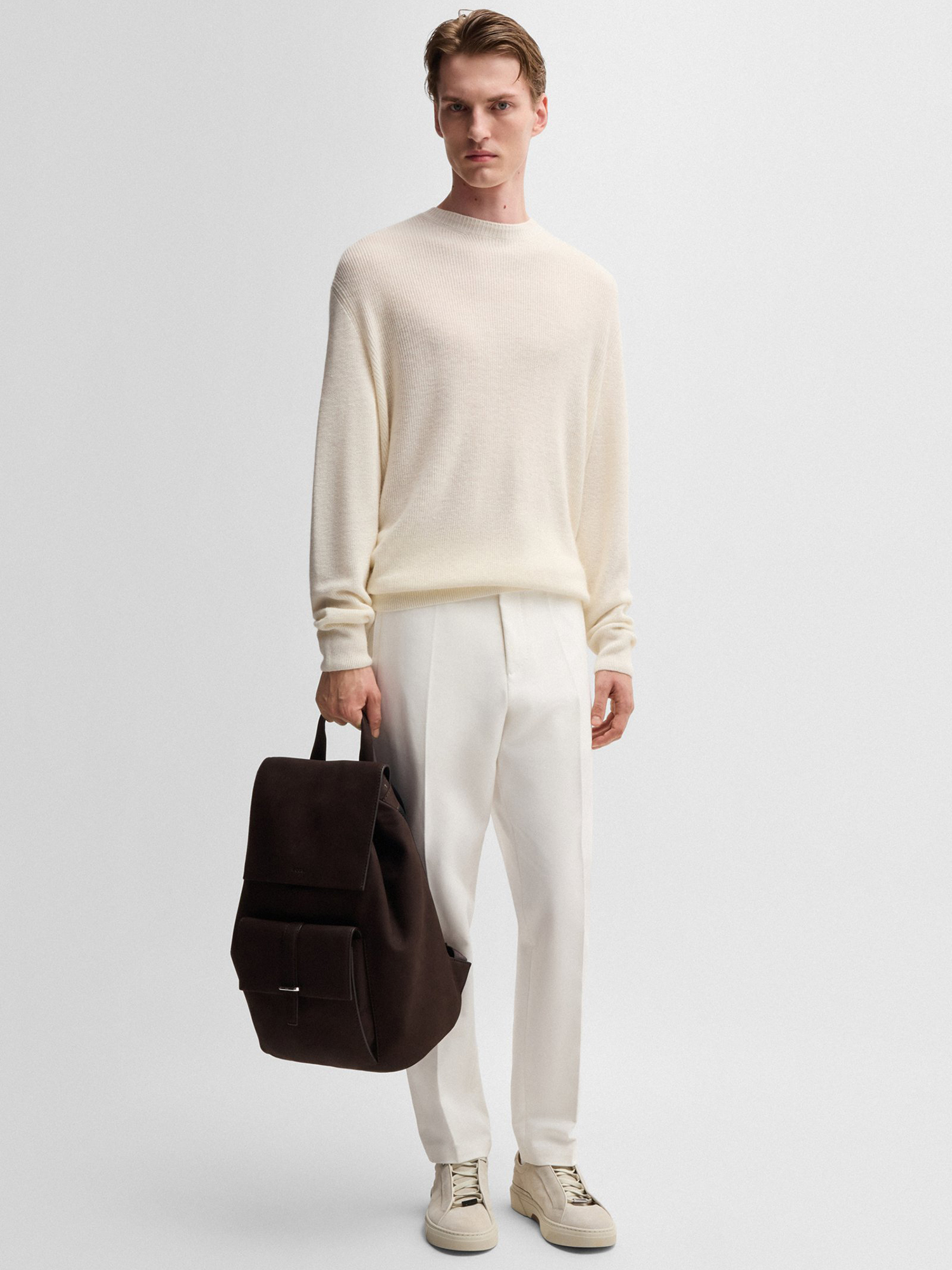 Белый свитер BOSS из льна и кашемира