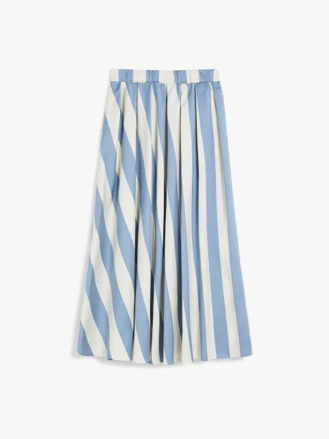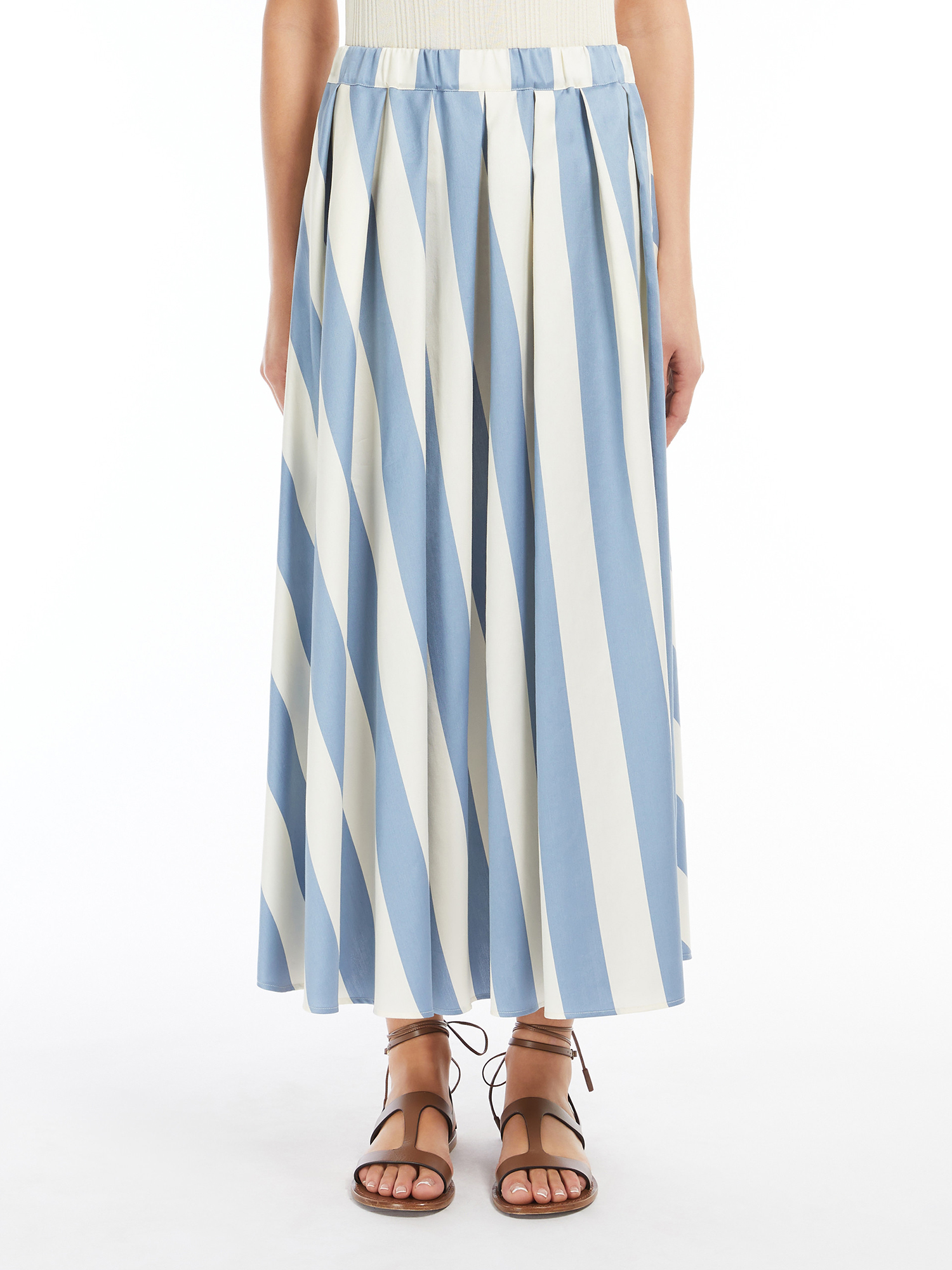Юбка из хлопка и шелкового атласа Принт в полоску Эластичная талия Потайные боковые карманы А-силуэт Общая длина: 92 см (размер 42) Рост модели: 180 см Размер модели: 40 Параметры модели: талия 63 см, бедра 90 см