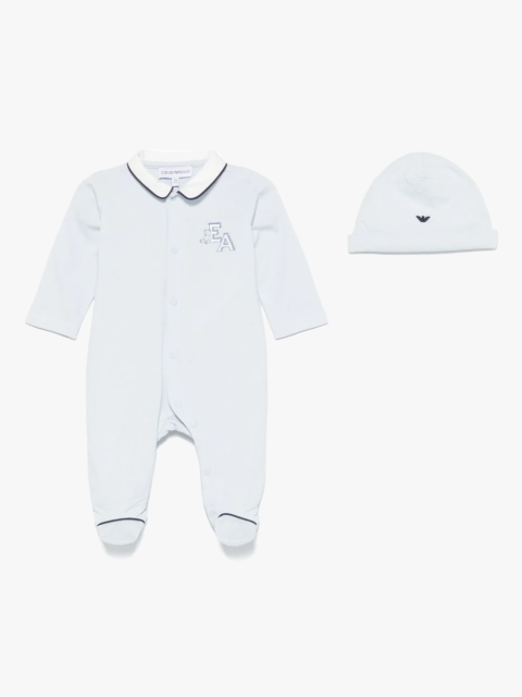 Светло-голубой комплект EMPORIO ARMANI KIDS из комбинезона и шапочки
