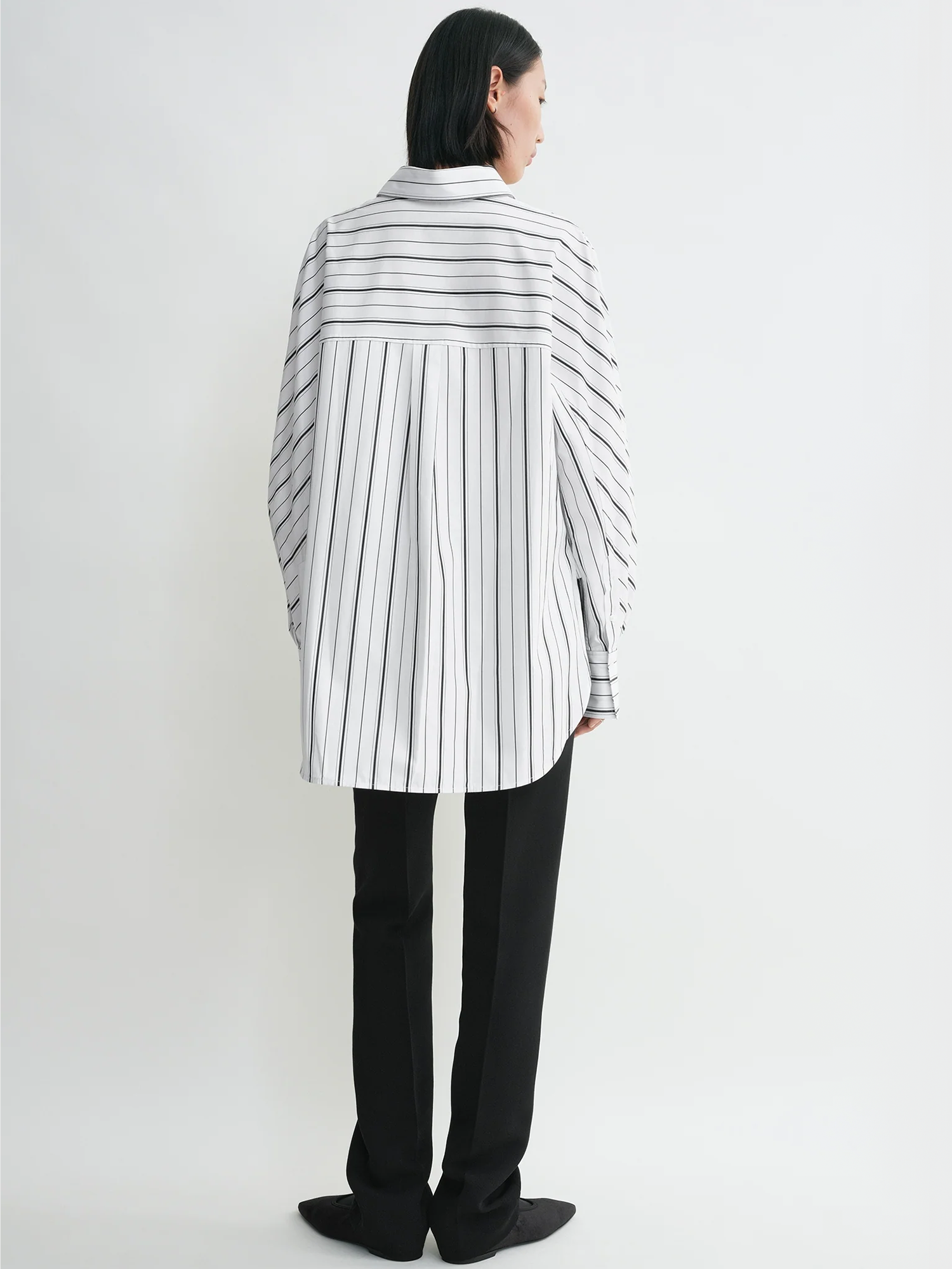 Сорочка з попліну з органічної бавовни Довгі рукави у стилі кімоно Кокетка на спинці Асиметричний поділ Принт у смужку Крій оверсайз Колір: білий Зріст моделі 180 см Розмір: 36