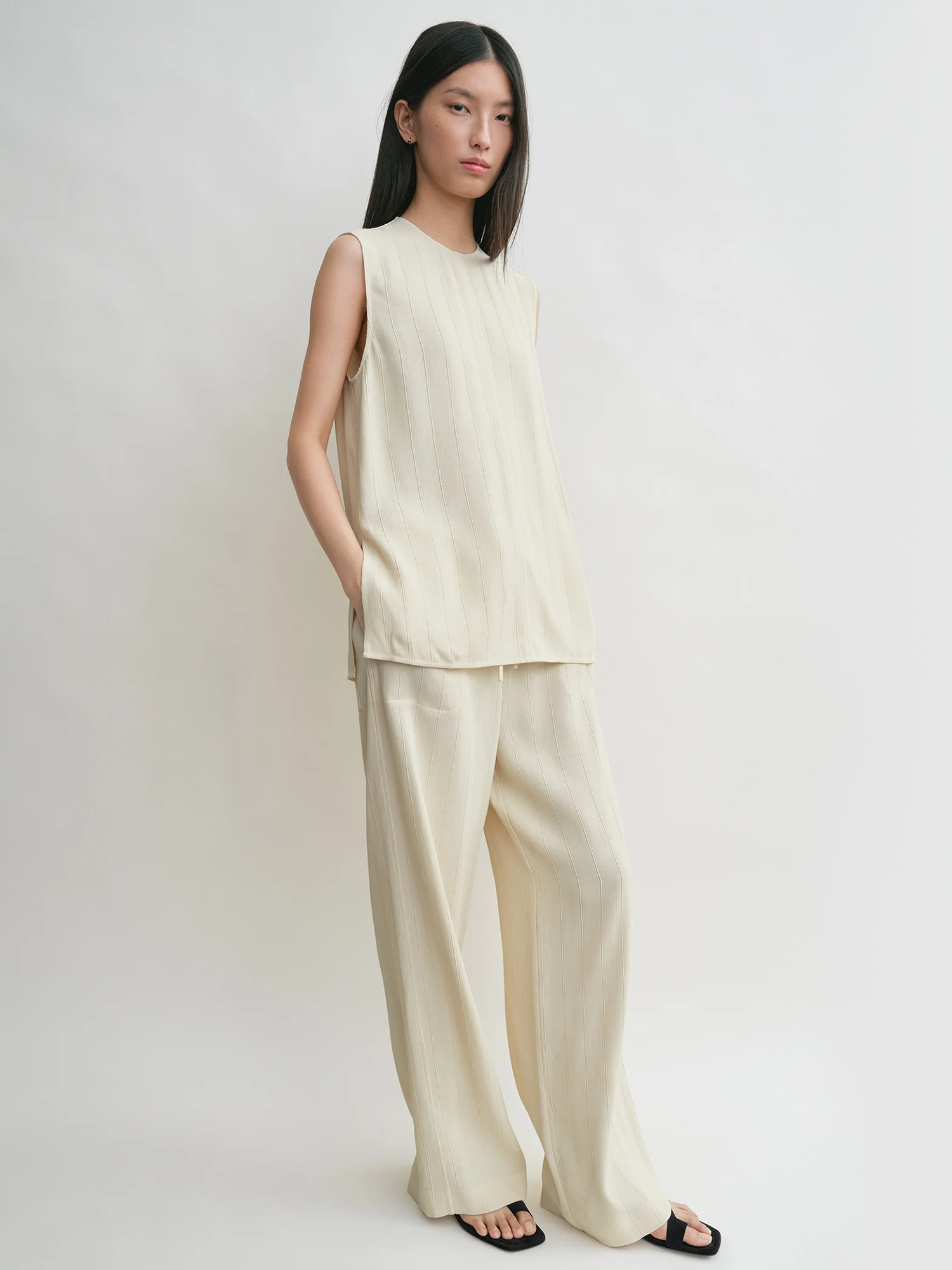 Блуза из смеси вискозы и льна Круглый вырез Без рукавов Боковые разрезы Рельефные вертикальные полоски Скрытая застежка-молния Цвет: экрю