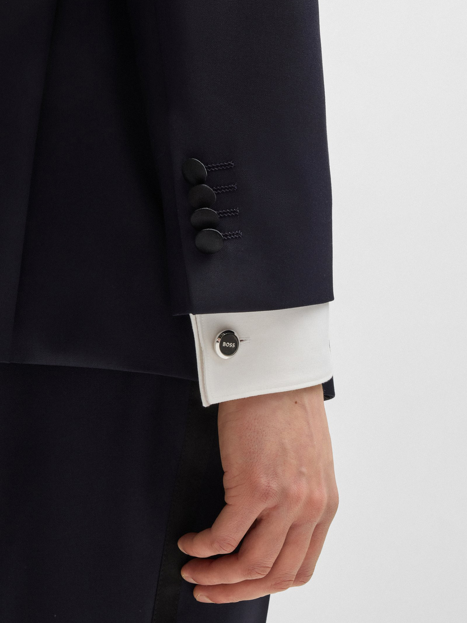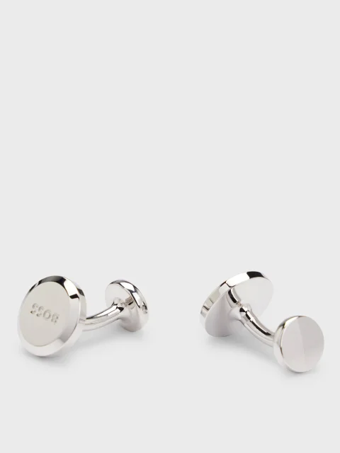 Серебристые запонки BOSS с гравировкой логотипа