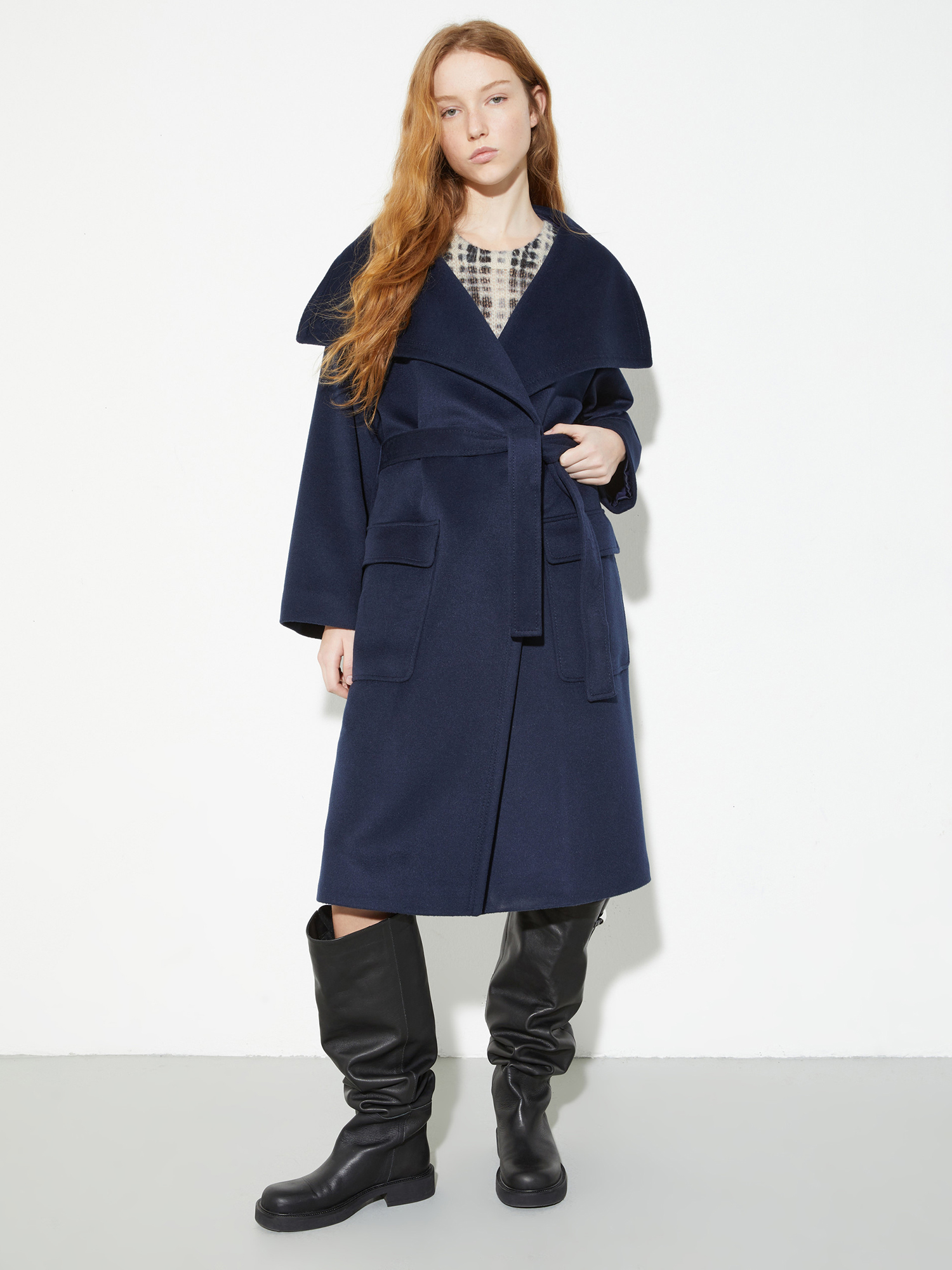 Темно-синее пальто MAX&CO из шерсти и кашемира