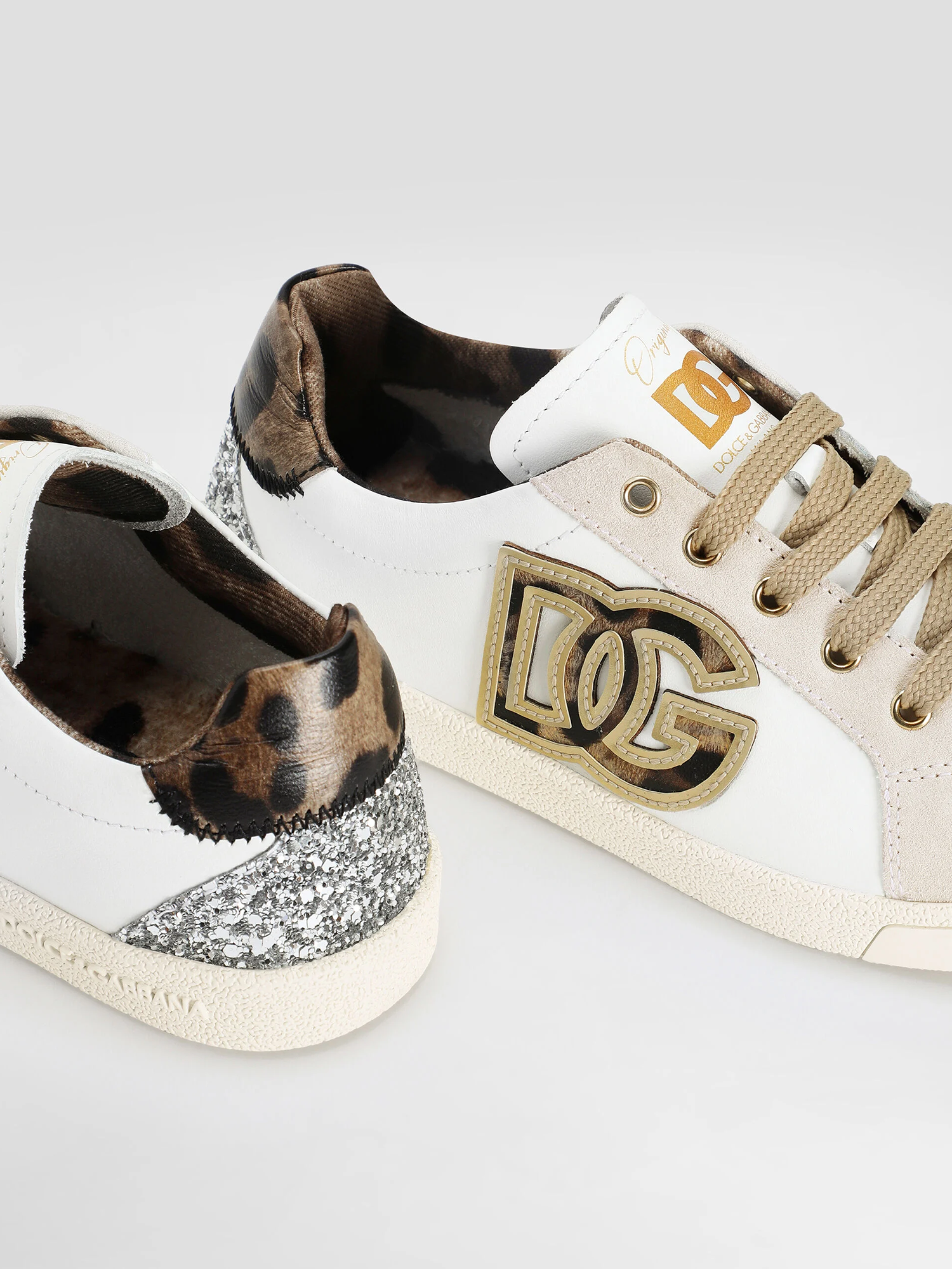 Детские кроссовки DG Original из телячьей кожи, замши и пони с глиттером и вышивкой. Многоцветная модель сочетает комфорт и стиль: прочная резиновая подошва, анатомическая стелька и шнуровка обеспечивают удобную посадку. Выполнены в Италии и комплектуются фирменной коробкой с хлопковым мешком.