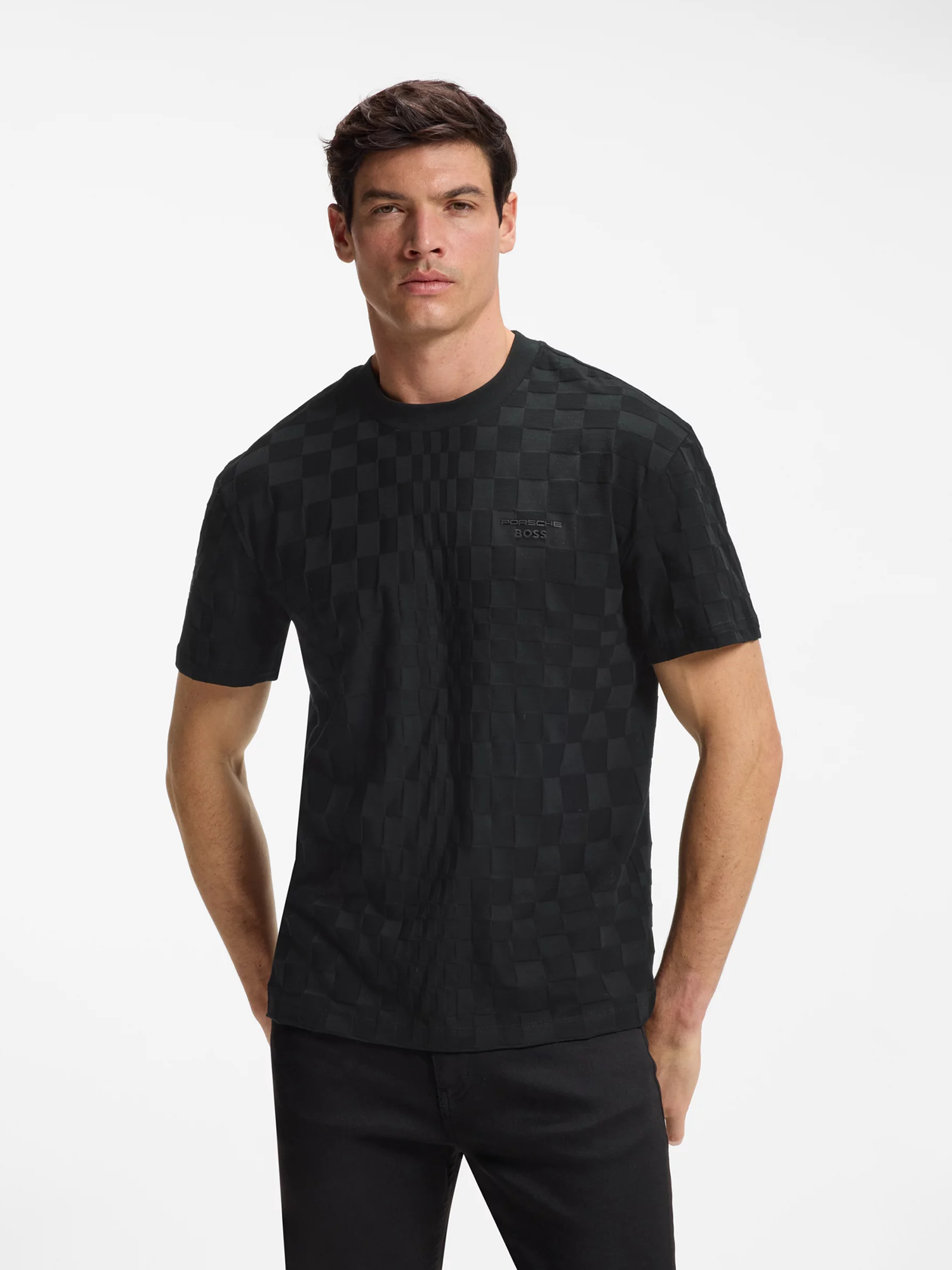 Черная футболка BOSS из жаккардового хлопка