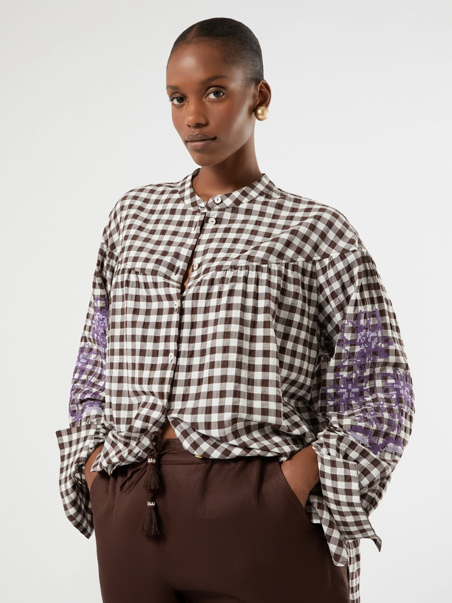 Блуза с клетчатым узором Marina Rinaldi из смеси хлопка
