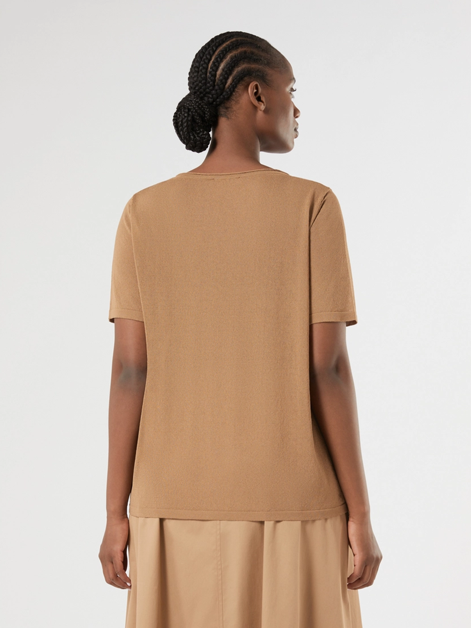 Футболка из вискозного крепа Модель входит в коллекцию Voyage Прямой крой Круглый вырез Короткие втачные рукава Рост модели: 180 см Размер модели: М