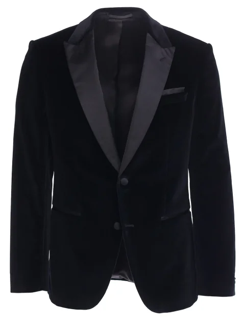 - Ворот: отложной с атласными лацканами